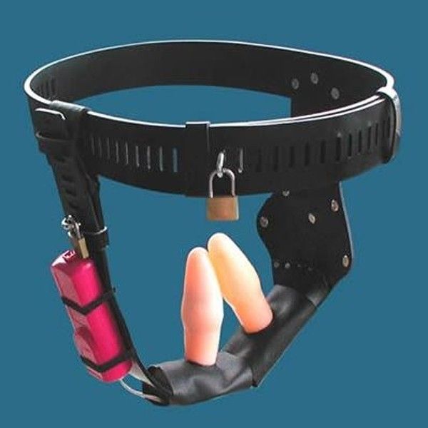 Пояса верности (Ж) оптом / Черное женское устройство целомудрия с двуми вибро пробками по оптовой цене