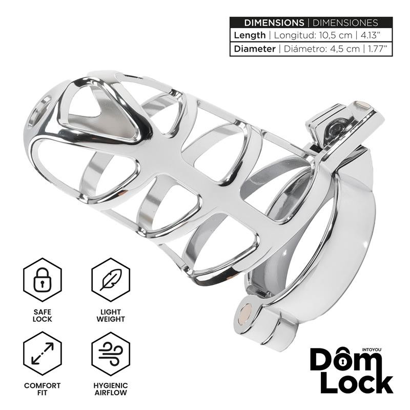 Вес 0.3 кг; Бренд Domlock; Производство Испания; Цвет Серебро; Материал Медицинская сталь; Take control with Domlock, your brand of penis cages that will unleash your desire. With this penis cage, you can master the art of submission once and for all. These cages put the possibility of awakening passion by locking away desire within your reach, or your penis. More than just a cage, Domlock is a brand that promises pleasure by blending the sensation of surrender and submission with passion and sexual freedom. They are perfect for extended use, combining functionality and comfort. They feature a high-quality locking mechanism that allows you to lock your partners erection in an erotic and effective way. They feature an ideal design for hygienic airflow and lightweight materials for optimal comfort and fit. Lock away your desire and grant the power of your pleasure to whomever you want and lead the game of dominance. Features: Size M: 10.5 cm x 4.5 cm Includes: Cock cage Pubic ring Padlock with two keys Пояс верности для мужчин значительно отличается от женского. Хотя и присутствуют такие же виды белья как и у женщин. Обычно пояс верности для мужчин представляет собой клетку для пениса. Изготавливается из пластмассы или нержавеющей медицинской стали. Пояс верности для мужчин может использоваться как надежный фиксатор мужского пениса для психологического успокоения женщин. Ведь для женщин главное чтобы мужик не ходил на сторону. Так же может быть использовано как атрибут для сексуальных игр. Экспериментировать можно по-разному, главное включить воображение. Надежно закрепив пояс верности можно зафиксировать при помощи замочка а ключик спрятать в надежном месте, и заставить мужчину заслужить его. Не требует особого ухода за конструкцией, достаточно промыть под проточной водой с мылом.