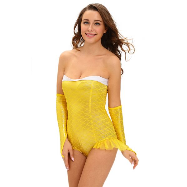 Карнавальные костюмы оптом / Сексуальный блестящий желтый костюм русалки по оптовой цене